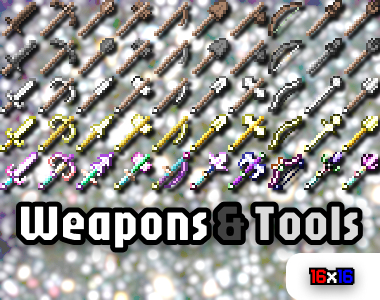 50 weapons/tools for use in games. Each item is made in 16x16.